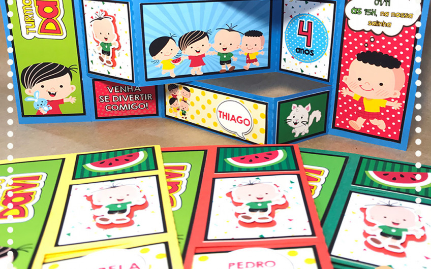 Você escolhe o tema e nós preparamos um kit com papelaria personalizada e descartáveis.